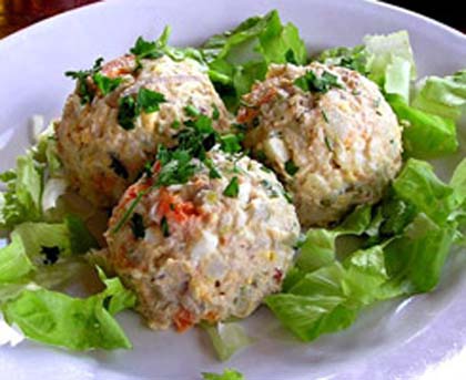 Mix all ingredients together. Garnish with hard-boiled egg if desired. Decorate with olives.